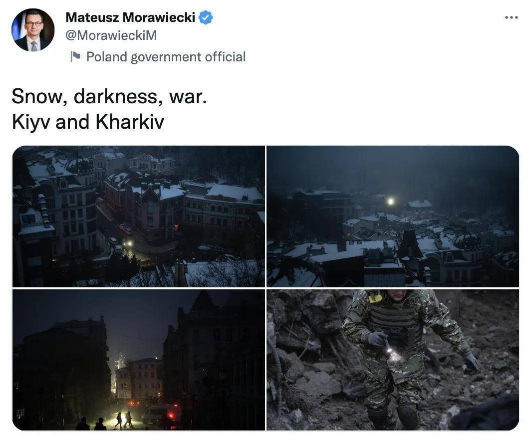 "Снег, темнота, война. Киев и Харьков", - подписал фото Моравецкий.