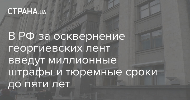В России за осквернение георгиевских лент введут штрафы до пяти миллионов рублей или до 5 лет колонии. Сегодня Госдума проголосовала за этот законопроект в целом, сообщают российские СМИ.
