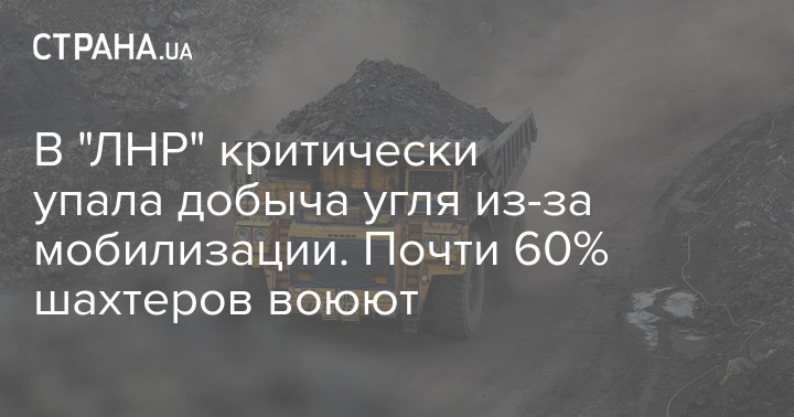 В "ЛНР" сообщили о падении добычи угля из-за мобилизации. Как заявил "глава ЛНР" Леонид Пасечник, в 2022 году 58% шахтеров "республики" были мобилизованы, и это сказалось на добыче угля.