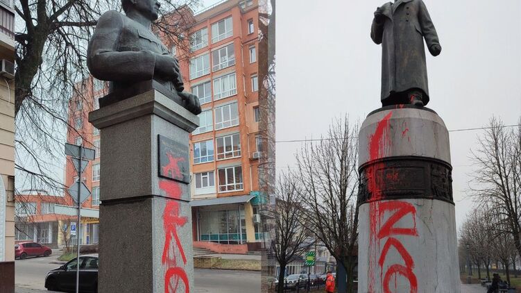 В Полтаве облили красной краской памятники советским генералам и оставили на них надпись "ZЛО". Фото