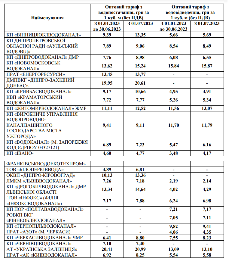 Речь идет об изменении тарифов на централизованное водоснабжение и водоотвод лицензиатам НКРЭКУ, реализующим воду или очищающим сточные воды другим предприятиям водопроводно-канализационного хозяйства (то есть оптовый тариф), а также тарифов на централизованное водоснабжение и водоотвод для всех остальных потребителей.