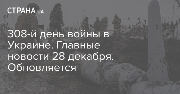 В среду, 28 декабря, в Украине идет уже 308-й день войны с РФ.