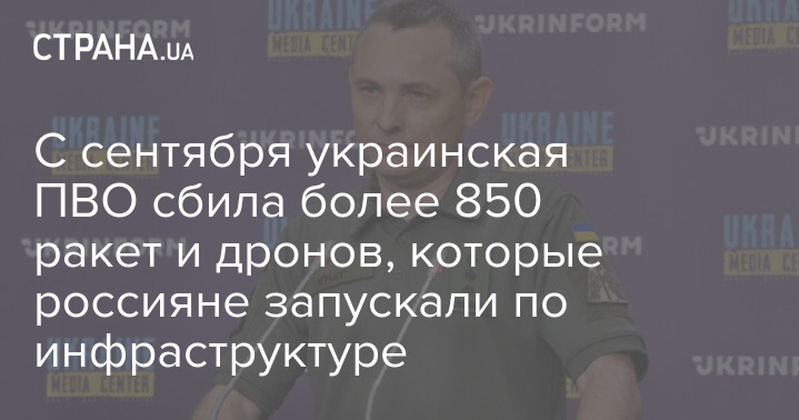 Украинские силы противовоздушной обороны с сентября сбили более 420 ракет, которые россияне запускали по критической инфраструктуре. Также было приземлено 430 дронов-камикадзе.