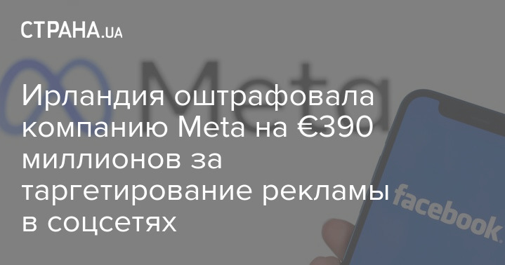 Комиссия по защите данных Ирландии наложила два штрафа на общую сумму 390 млн евро. Решение комиссии связано с двумя жалобами, поданными в мае 2018 года, которые могут перевернуть бизнес-модель Meta по таргетированию рекламы для пользователей в зависимости от того, что те делают в Интернете. Ирландский надзорный орган - ведущий европейский регулятор со штаб-квартирой в Дублине - оштрафовал компанию на 210 миллионов евро за нарушение правил ЕС о конфиденциальности данных, связанных с Facebook, и еще на 180 миллионов евро за нарушения, связанные с Instagram.
