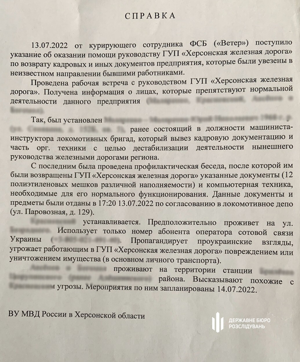 "Есть сведения о структуре оккупационной администрации и начислении зарплаты в рублях. Найдены конспекты, в которых записывались особенности законодательства РФ. Также обнаружены справки о херсонских патриотах и активистах", - говорится в сообщении.