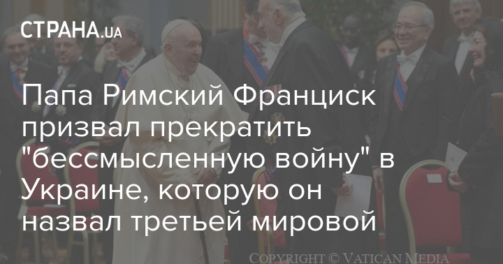 Папа Римский Франциск в очередной раз призвал к прекращению "бессмысленной войны" в Украине, которую он назвал третьей мировой.