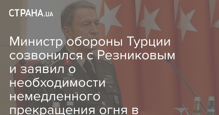 Министр обороны Турции созвонился с Резниковым и заявил о необходимости немедленного прекращения огня в Украине