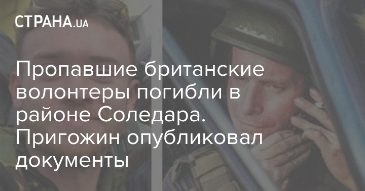Пропавшие британские волонтеры погибли в районе Соледара. Пригожин опубликовал документы