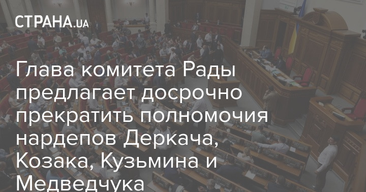 Глава комитета Верховной Рады по вопросам регламента, депутатской этики и организации работы Верховной Рады Сергей Кальченко предлагает досрочно прекратить полномочия нардепов Андрея Деркача, Тараса Козака, Рената Кузьмина и Виктора Медведчука, которых президент лишил гражданства Украины.