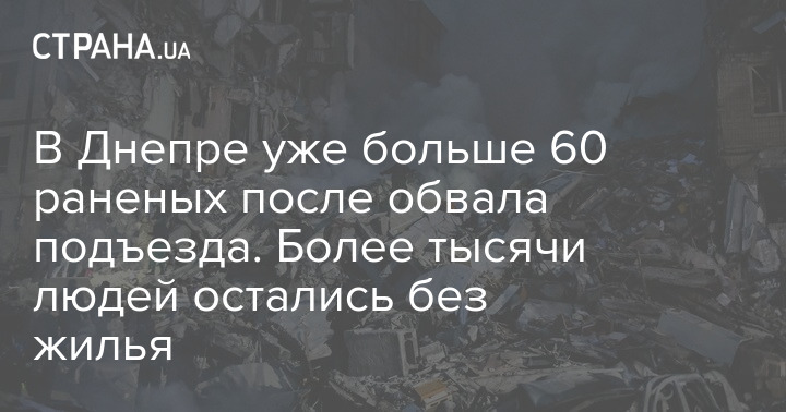 В Днепре уже больше 60 раненых после обвала подъезда. Более тысячи людей остались без жилья