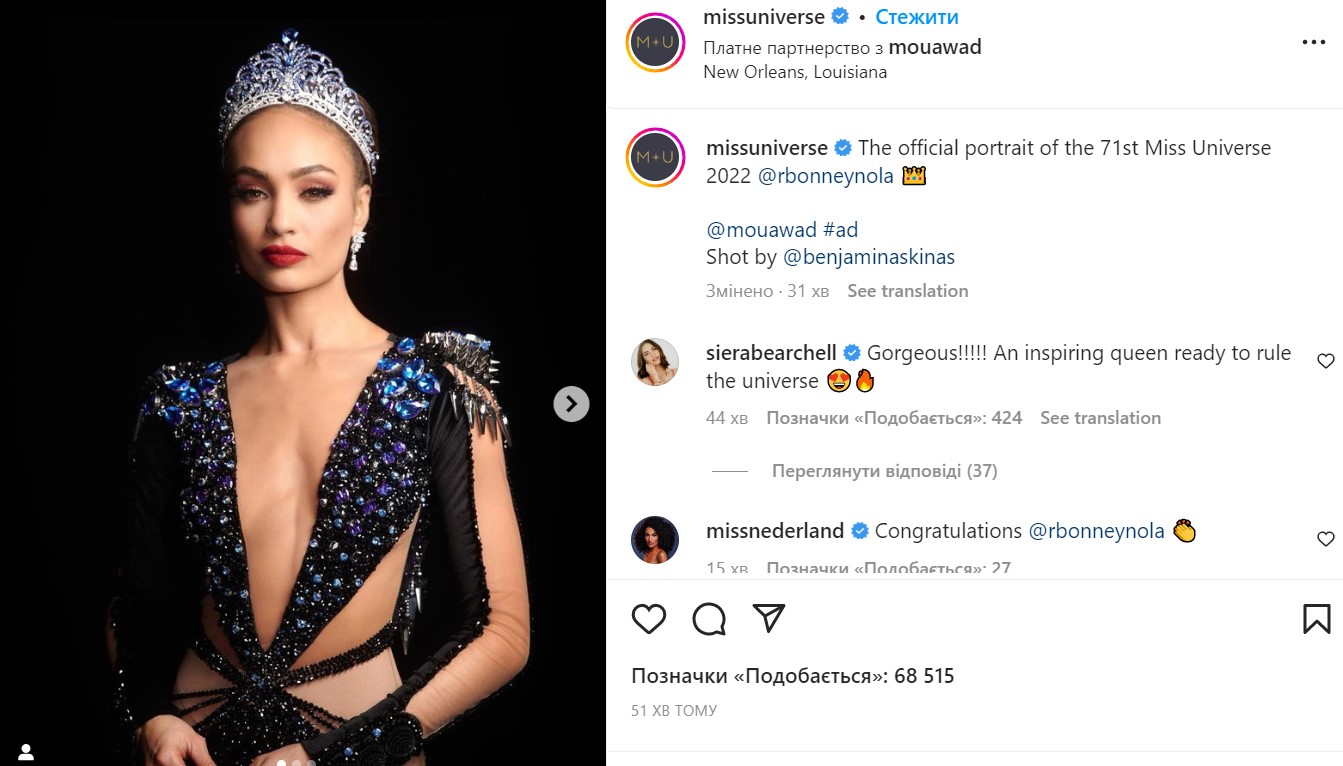 Как писала "Страна", предыдущий конкурс Miss Universe-2021 ("Мисс Вселенная-2021") проходил в Израиле. Победительницей стала представительница Индии Харнааз Сандху.