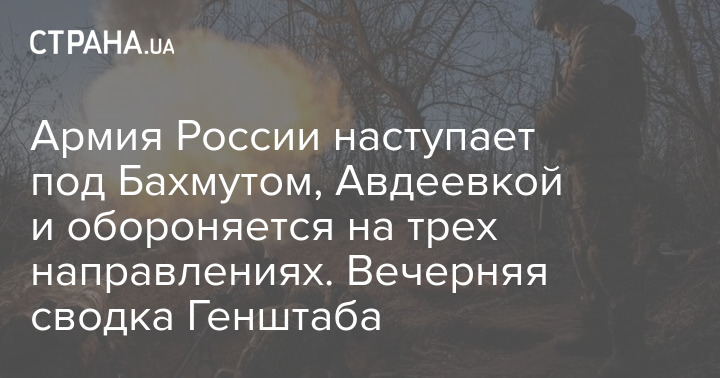 Сообщается, что российские войска наступают под Бахмутом и Авдеевкой, обороняются под Запорожьем, Херсоном и Новопавловкой.