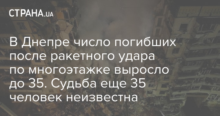 В Днепре число погибших после ракетного удара по многоэтажке выросло до 35. Судьба еще 35 человек неизвестна