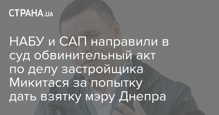 НАБУ и САП направили в суд обвинительный акт по делу застройщика Микитася за попытку дать взятку мэру Днепра