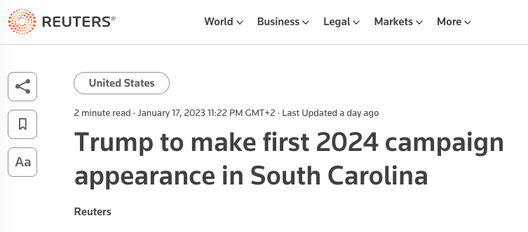 Дональд Трамп, уже объявивший об участии в выборах 2024 года, начинает президентскую кампанию. 28 января он выступит в парламенте Южной Каролины.