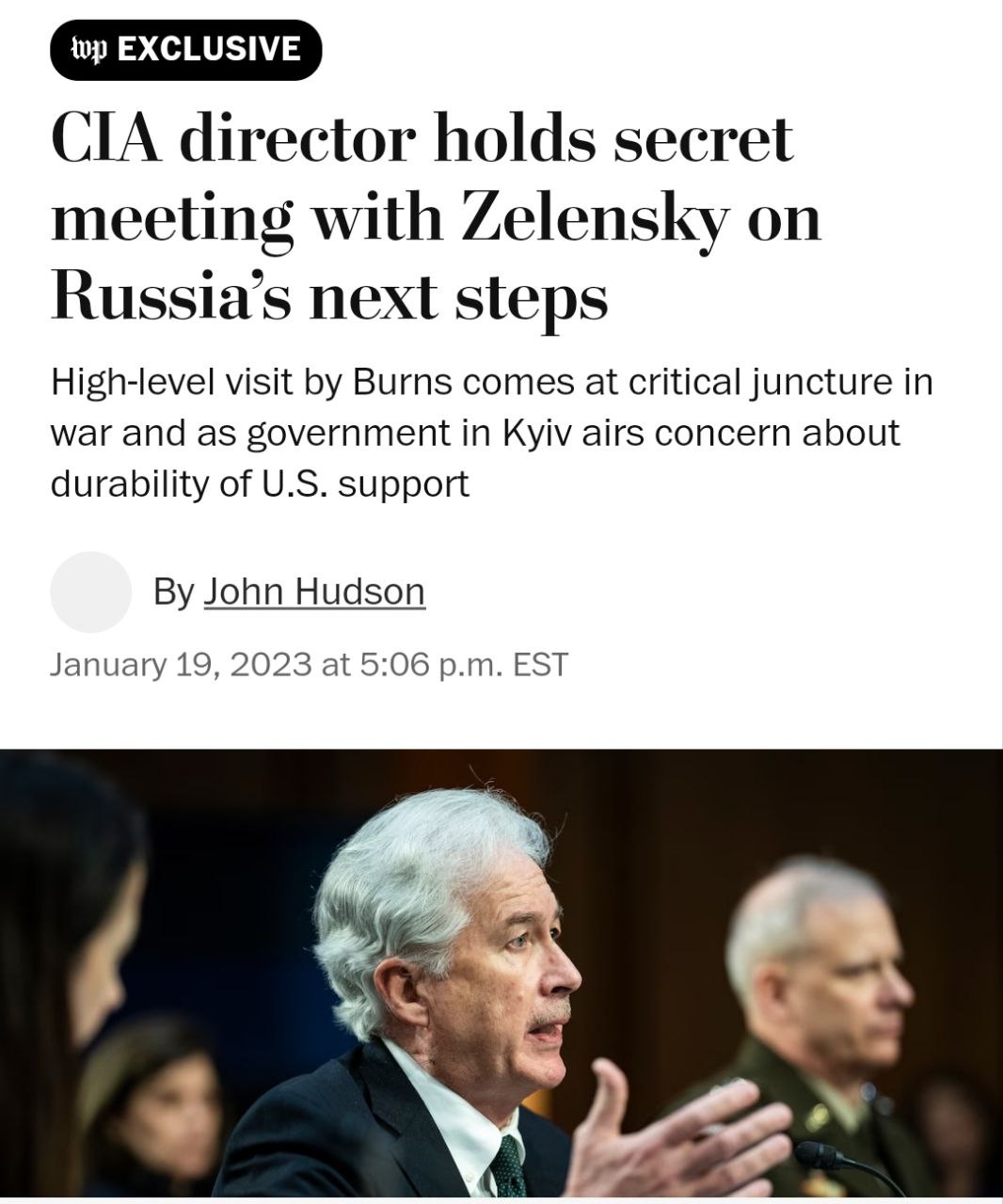 09.51 Еще детали со встречи директора ЦРУ Бернса и президента Зеленского в Киеве, которая состоялась на прошлой неделе.