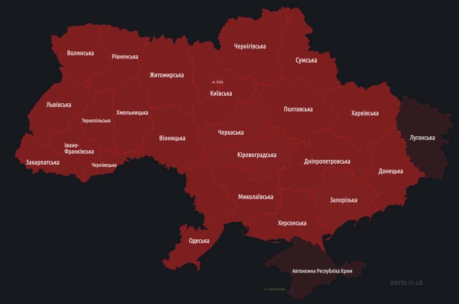 09.42 Регионы на востоке Украины в зоне воздушной тревоги.