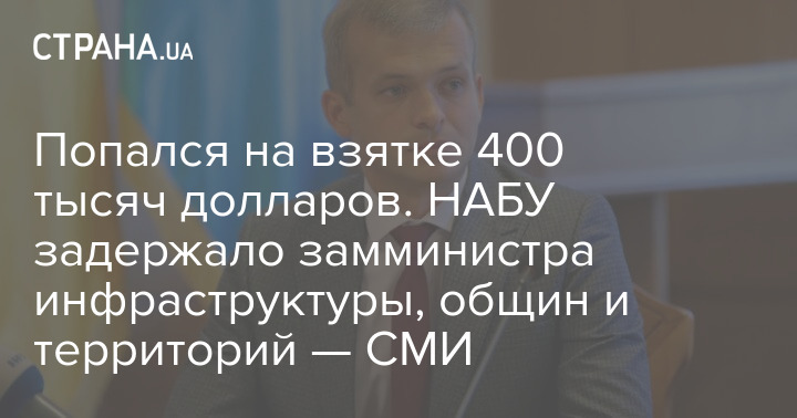 Попался на взятке 400 тысяч долларов. НАБУ задержало замминистра инфраструктуры, общин и территорий — СМИ