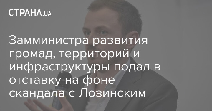Заместитель министра развития громад, территорий и инфраструктуры Иван Лукеря подал в отставку на фоне коррупционного скандала с его коллегой Василием Лозинским, которого задержало НАБУ.
