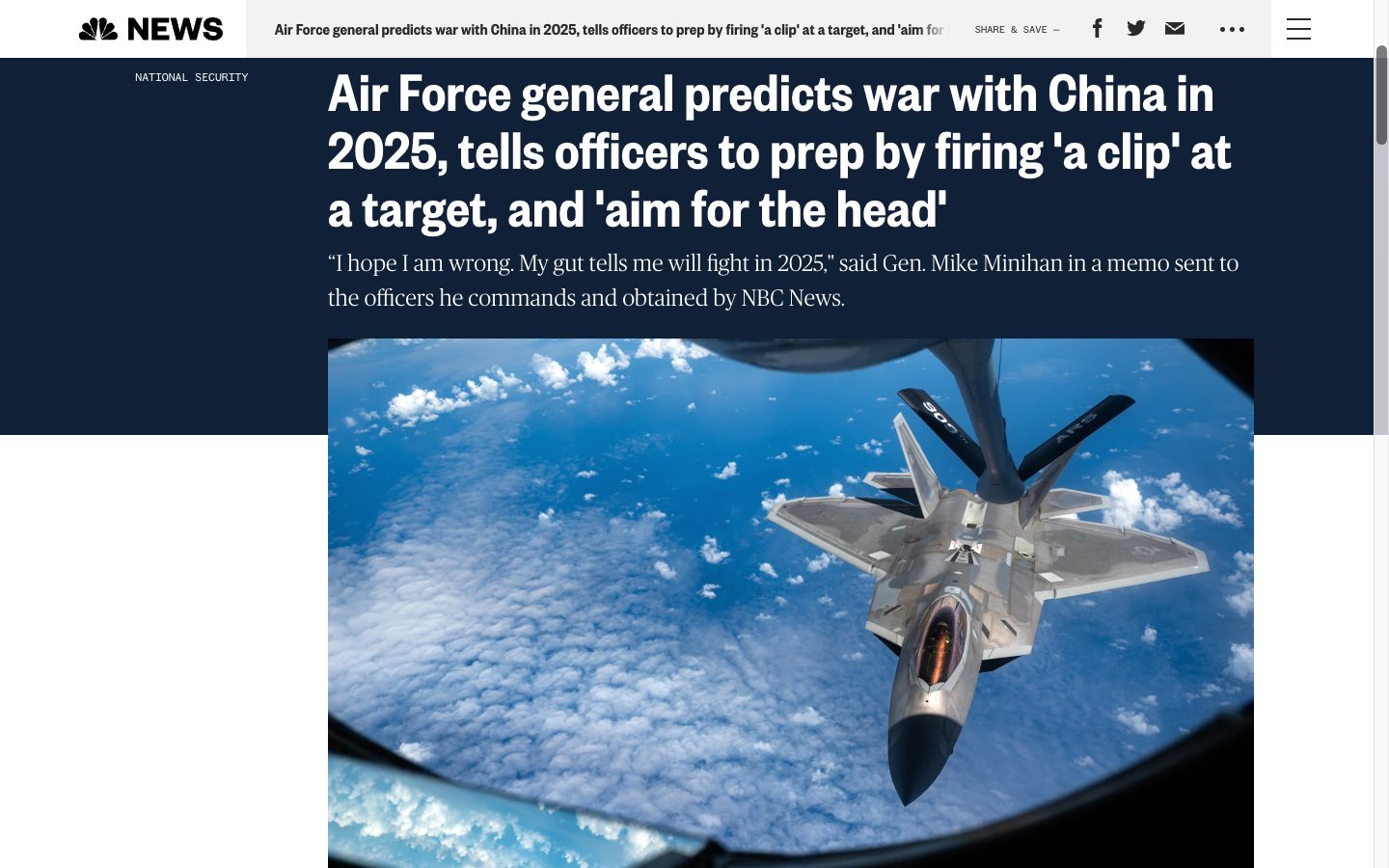 Высокопоставленный генерал ВВС США Майкл Минихэн призвал американские войска готовится к тому, что Китай может начать войну с США через два года. Правда, его прогнозы основаны на интуиции.