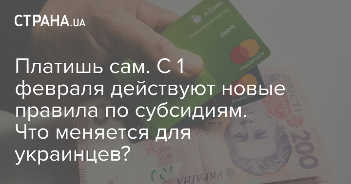 В Украине изменились правила по субсидиям. С 1 февраля безналичное перечисления бюджетных средств напрямую поставщикам коммунальных услуг остановлено. Теперь деньги станут перечислять напрямую людям на банковские счета, а уже они должны будут сами платить за коммуналку.