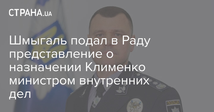 Шмыгаль подал в Раду представление о назначении Клименко министром внутренних дел