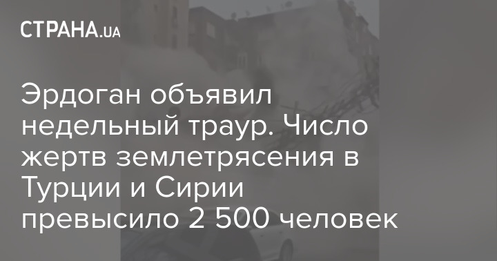 Число погибших в результате землетрясений в Турции и соседней Сирии превысило 2 500 человек. Более 1500 человек погибли в Турции, более 1000 - в Сирии.