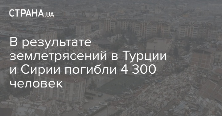 Общее число погибших в землетрясениях на территориях Турции и Сирии составляет около 4 300 человек.