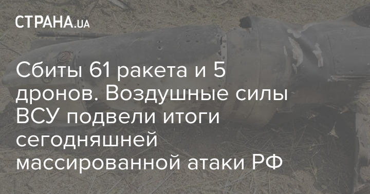 Во время сегодняшней ракетной атаки уничтожены 61 из 71 ракет, также уничтожены 5 дронов-камикадзе Shahed-136/131. Об этом заявили в Воздушных силах ВСУ.