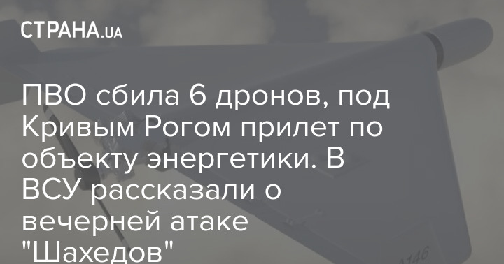 ПВО сбила 6 дронов, под Кривым Рогом прилет по объекту энергетики. В ВСУ рассказали о вечерней атаке "Шахедов"
