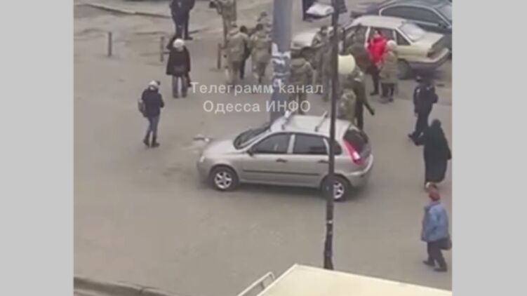 В Одессе продолжают забирать с улиц военнообязанных. Скриншот видео