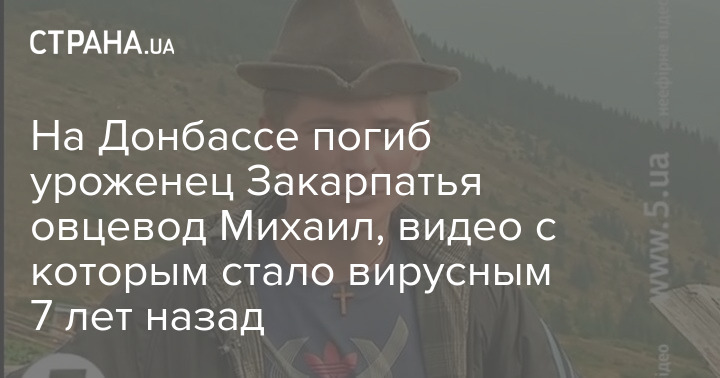 На Донбассе в бою погиб уроженец Закарпатья 27-летний Михаил Кознюк, который стал семь лет назад широко известен благодаря сюжету 5-го канала как "старший вівчар Михайло". Это видео стало вирусным.