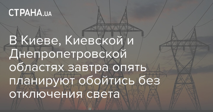 В Киеве, Киевской и Днепропетровской областях завтра опять планируют обойтись без отключения света.