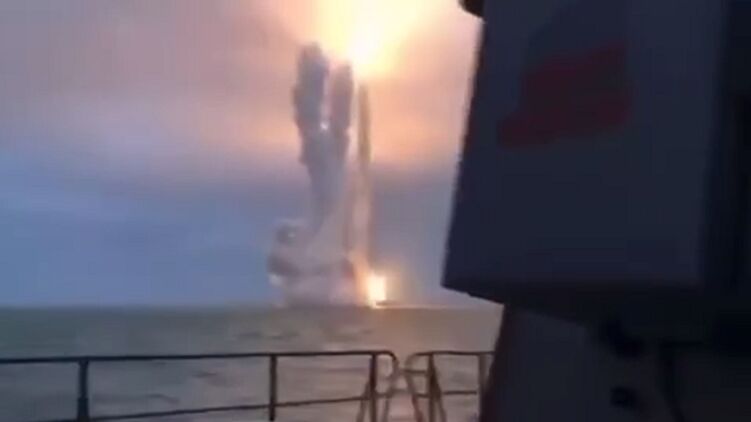 В соцсетях появилось видео запуска ракет "Калибр" с российских кораблей. Судя по кадрам, запуск ракет снимают очевидцы с соседней палубы.