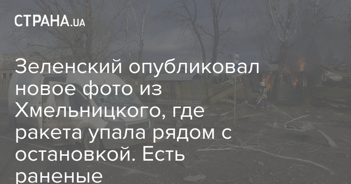 Президент Владимир Зеленский опубликовал еще одно фото с места прилета по Хмельницкому сегодня утром. Ранее сообщалось о двух раненых мирных гражданах.