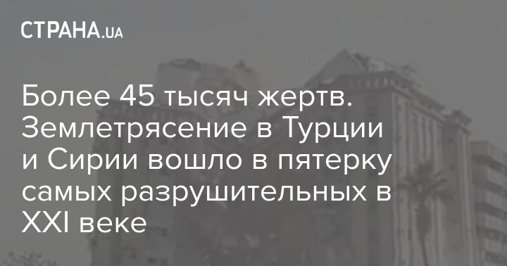 Более 45 тысяч жертв. Землетрясение в Турции и Сирии вошло в пятерку самых разрушительных в XXI веке