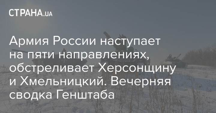 В Генеральном штабе Вооруженных сил Украины опубликовали оперативную сводку с фронта по состоянию на 18:00 18 февраля. Сообщается, что армия РФ атакует на пяти направлениях, обстреливает Херсонщину и Хмельницкий.