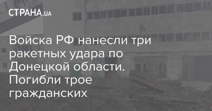 За сутки по Донецкой области были нанесены три ракетных удара. В Краматорске повреждено промышленное предприятие, в Ясногоровке - территория автосервиса и прилегающее трехэтажное здание, в Клебан-Быке - территория бывшей шахты.