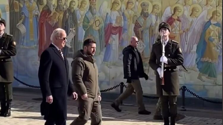 Также появилось видео, как включили сирену воздушной тревоги, когда Байден и Зеленский вышли из Михайловского собора.