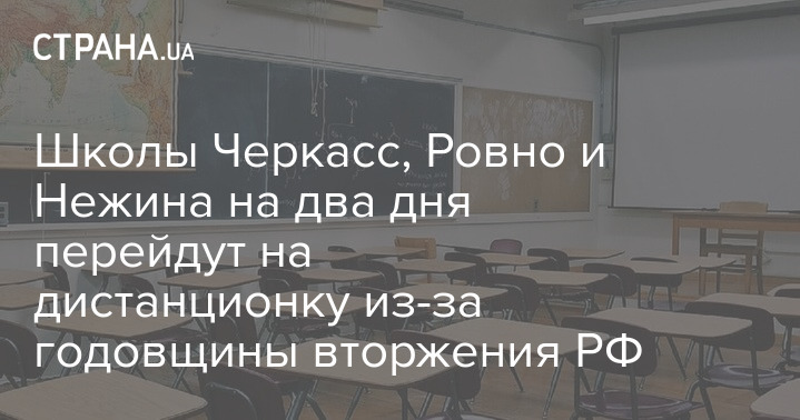 Вслед за Броварами, где на годовщину вторжения РФ все школы переводятся на дистанционное обучение, в Черкассах, Ровно и Нежине Черниговской области школы также переводят на дистанционку. Такие меры вводят из-за возможных ударов со стороны РФ 24 февраля.