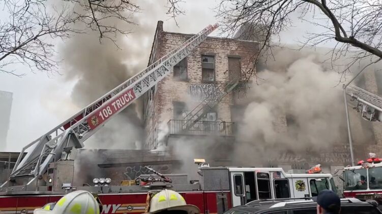 В Бруклине горит склад пиломатериалов. Скриншот из видео