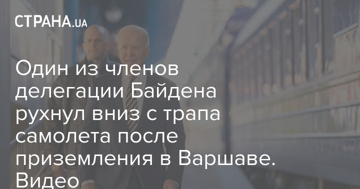 Во время начала визита президента США Джо Байдена в столицу Польши Варшаву один из членов его делегации, очевидно, поскользнувшись, покатился с трапа самолета вниз.