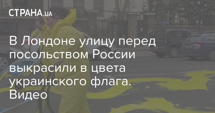 Улицу перед посольством России в британской столице выкрасили в синей и желтый цвета - цвета украинского флага.