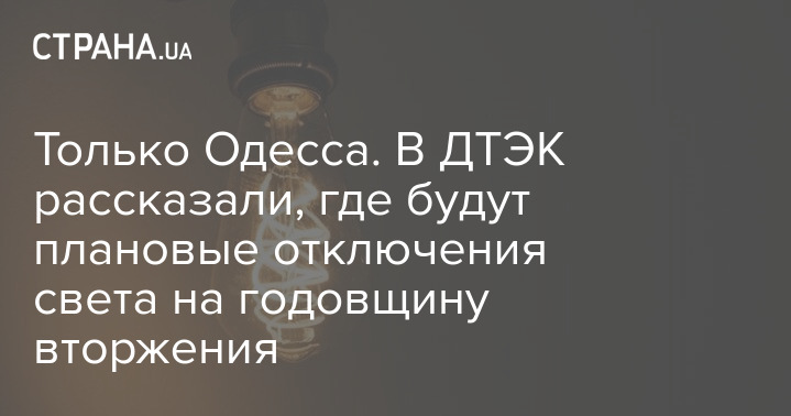 Только Одесса. В ДТЭК рассказали, где будут плановые отключения света на годовщину вторжения