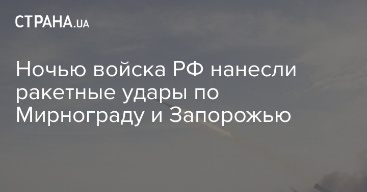 Минувшей ночью был ракетный удар по Мирнограду в Донецкой области. В Запорожье зафиксирован прилет на острове Хортица. Там загорелось админздание.