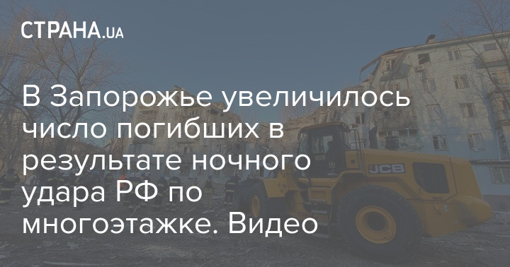 В Запорожье увеличилось число погибших в результате ночного удара РФ по многоэтажке. Видео