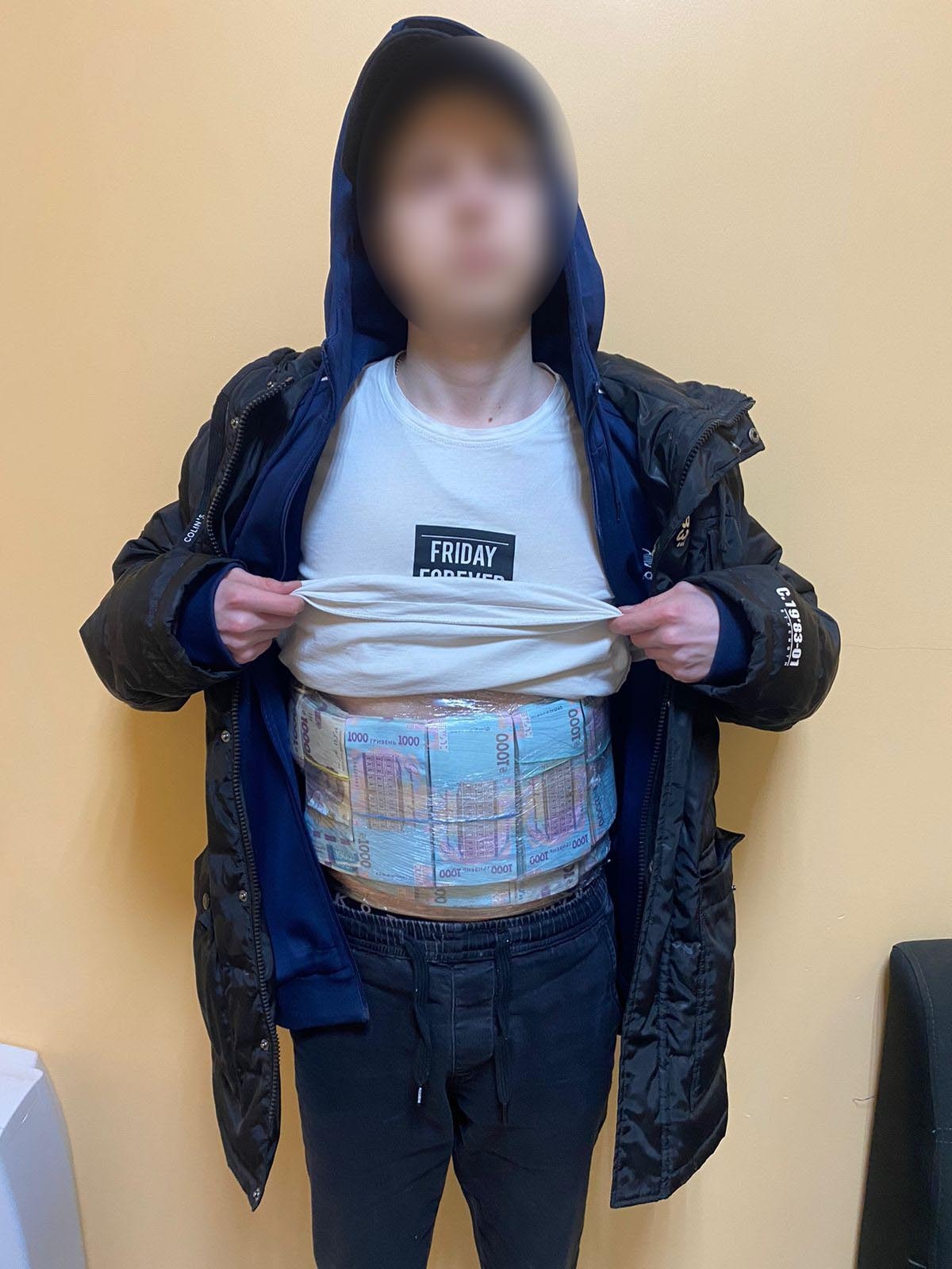 "В результате дальнейшего совместного с таможенниками осмотра лица, пограничники обнаружили на теле мужчины наличные деньги более чем в 2,2 миллиона гривен, прикрепленные пищевой пленкой", - рассказали в ГПСУ.