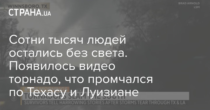 Американские штаты Техас и Луизиана накрыло торнадо. Сотни тысяч людей остались без света, отменено более 400 рейсов.