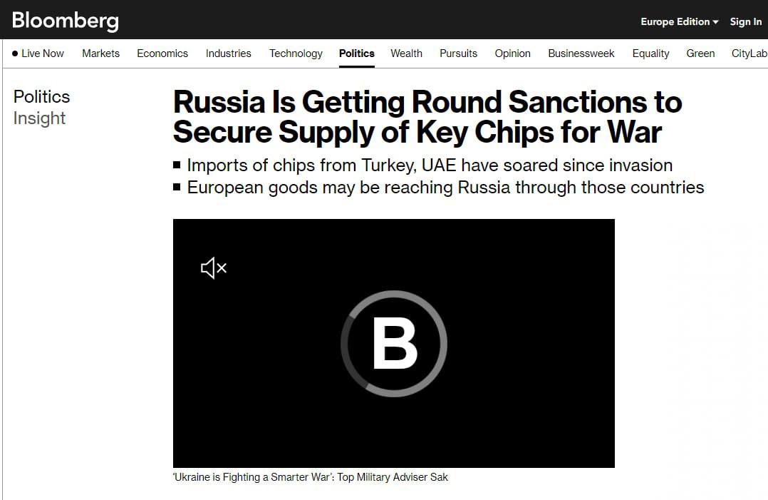 Данные, полученные Bloomberg, показывают, что Турция, Сербия, ОАЭ и полдюжины других стран Восточной Европы и Центральной Азии помогли России восполнить дефицит. Между тем, поставки высокотехнологичных компонентов в эти страны из стран НАТО выросли на аналогичную сумму. По словам дипломата, такие же закономерности проявляются в сотнях товарных категорий, но особенно четко они прослеживаются, когда речь идет о чипах и интегральных схемах, которые можно использовать в военных целях.