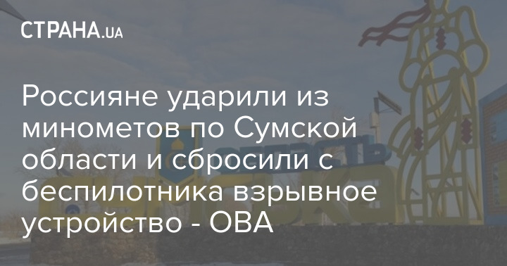 Россияне ударили из минометов по Сумской области и сбросили с беспилотника взрывное устройство - ОВА